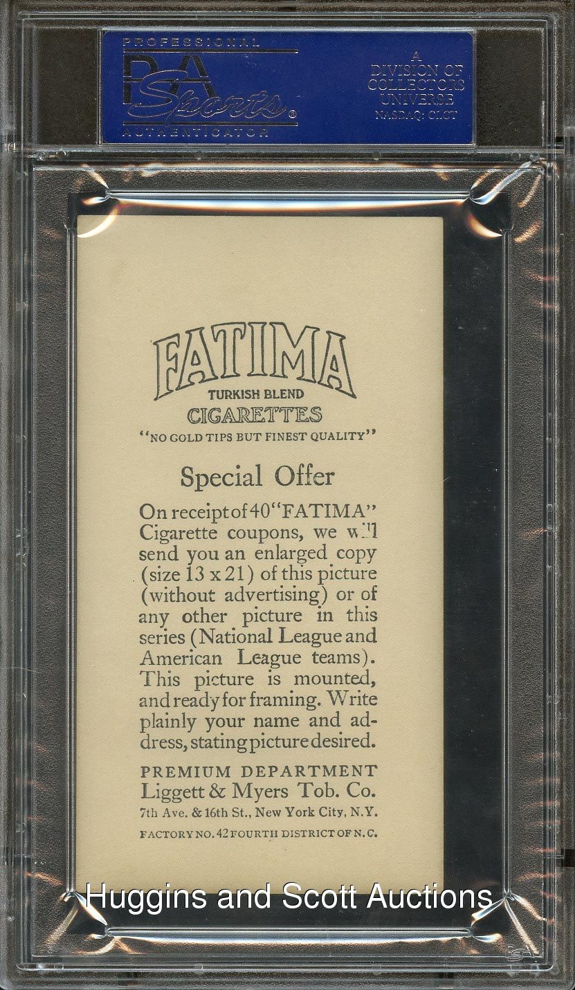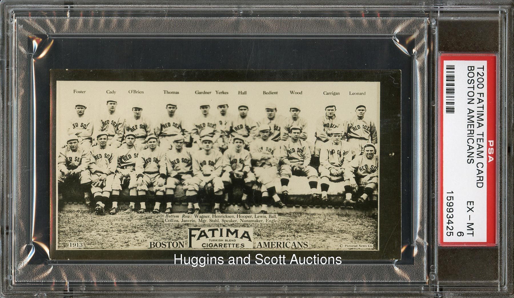Graded EX-MT 6 by PSA, this alluring 1913 T200 Fatima Boston Americans team card, heralded by greats such as Speaker and Wood, is one of two examples at the grading tier with only one better. An especially clean sample with negligible perimeter and surface wear.