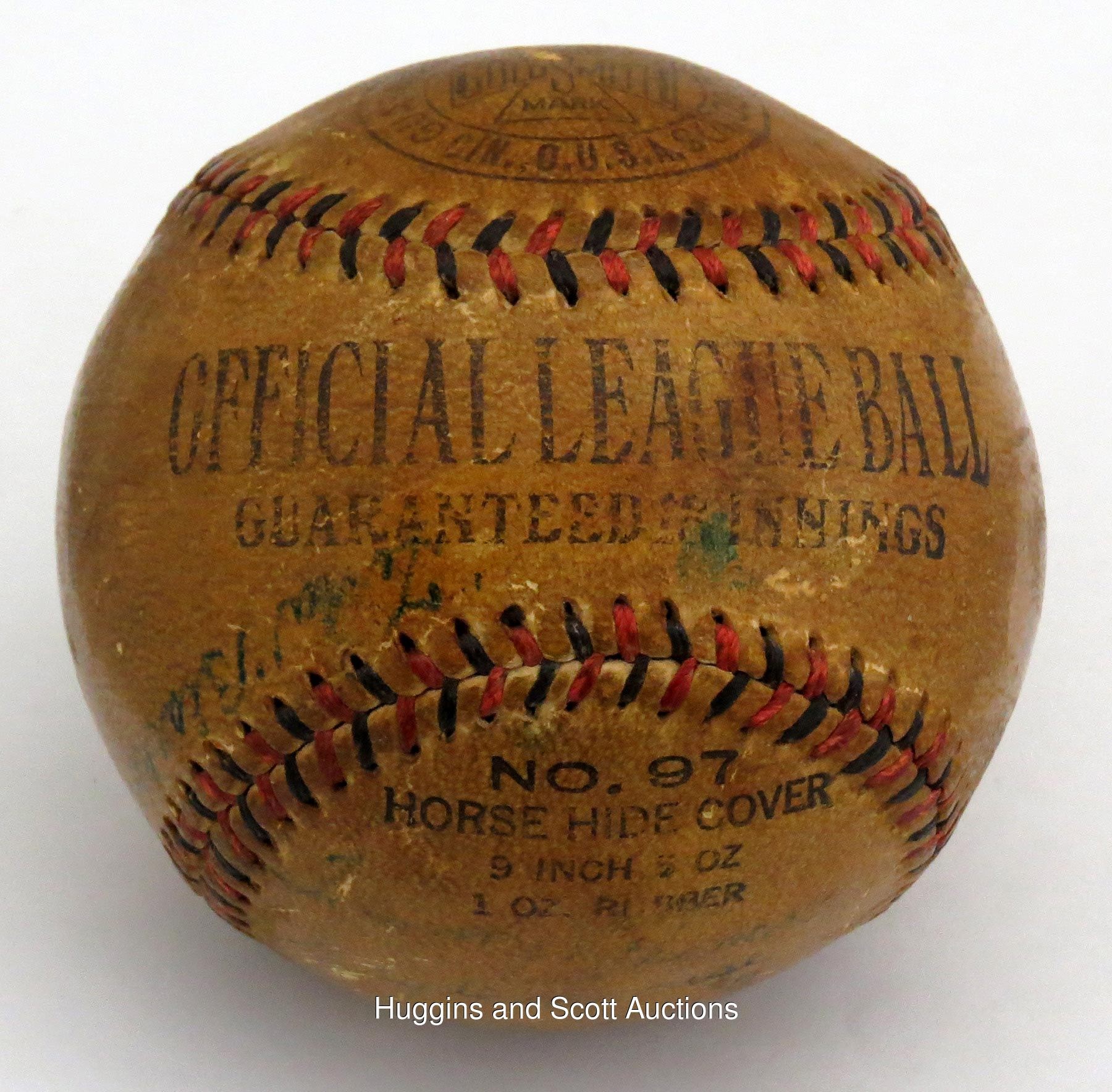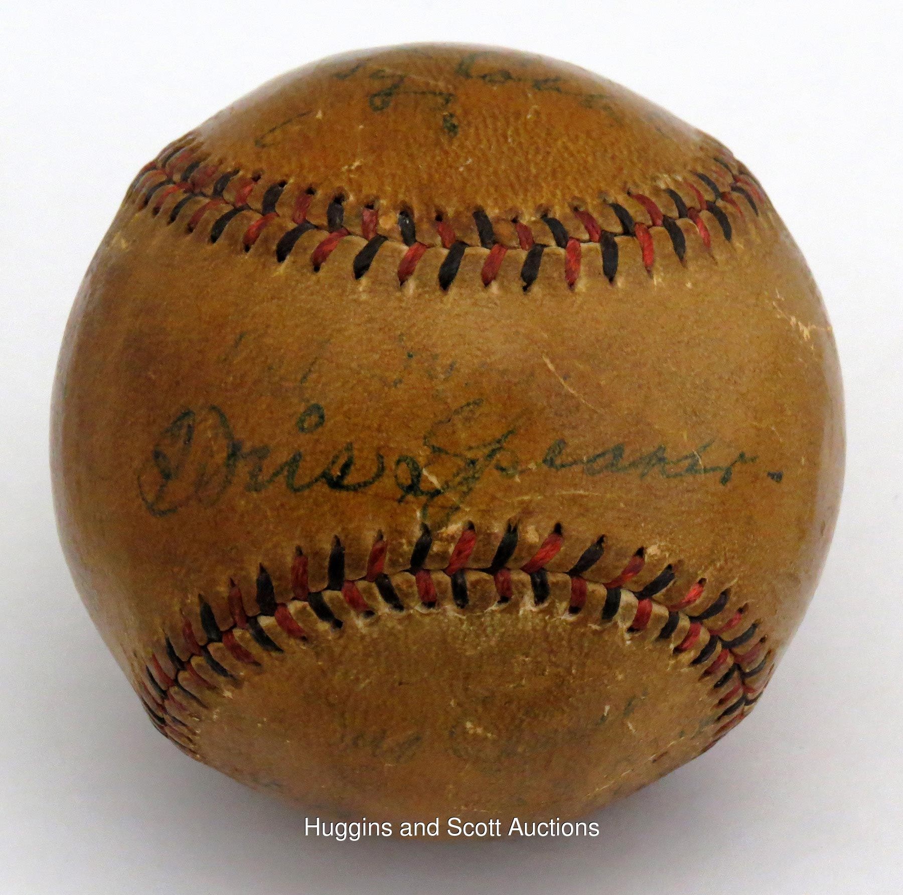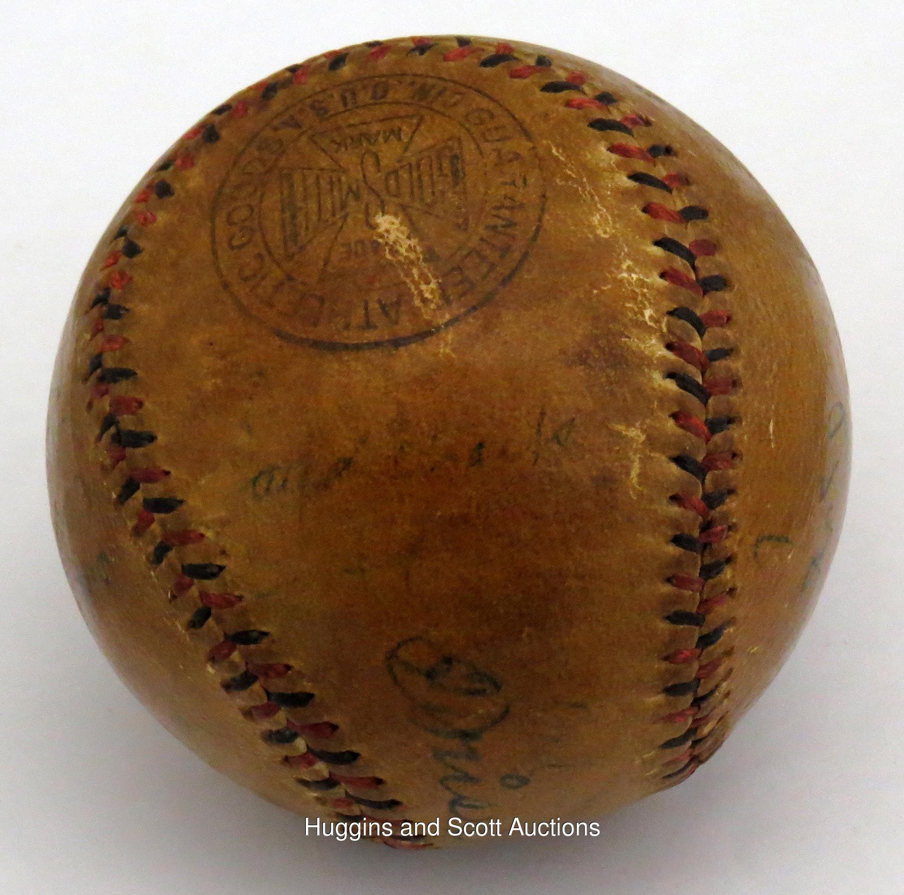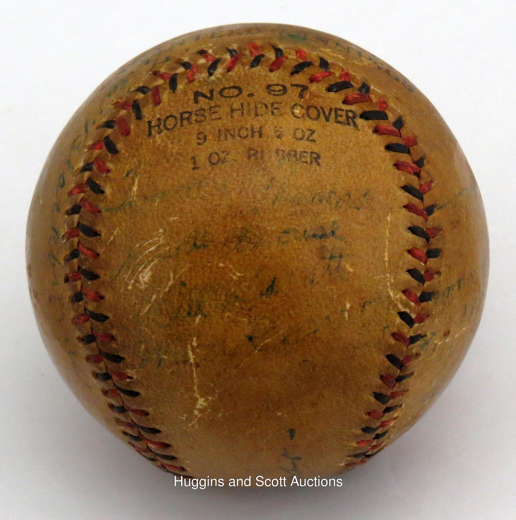 The ebb and flow of diamond fortunes simultaneously saw the Philadelphia Athletics on the ascent and the Chicago White Sox in the throes of decline as both tried (in vain) to unseat the almighty Yankees in 1928. Likely gathered during one of the 22 meetings between the A’s and ChiSox that year, (15) autographs decorate this vintage baseball. The darkly toned unofficial orb has a uniform coat of period shellac and features black-ink fountain pen scriptings that range between (“7”) and (“2-3”) in terms of strength and clarity. Highlights include: Cobb (“7” strength), Lyons (“3” strength), Schalk (“3” strength) and Speaker (“7” strength). Full photo LOA from JSA. More on our website.As for the clubs’ respective fortunes, the Athletics were quickly rising and one year away from the start of one of the most formidable dynasties in baseball history. Following the introduction of the upstart Federal League and Connie Mack’s resultant fire sale following the 1914 season, the Athletics endured seven successive last-place finishes and 10 straight losing seasons. Armed with veteran legends such as Cobb and Speaker, however, the A’s rallied furiously in 1928. Though they trailed the front-running Yankees by 12-1/2 games as late as July 17, the A’s went on a 40-12 tear to catch and pass the Bronx Bombers on September 8, only to succumb to New York in the end.Speeding in the opposite direction, the White Sox had been stripped of eight star players (and their collective dignity) after Commissioner Landis’ 1920 ruling. The 1928 season marked the club’s second of a franchise-long nine straight losing seasons.Assembled for one of 22 meeting that year, (15) A’s or Pale Hose principals saw fit to sign this souvenir. Includes:Sweet Spot: Ted Lyons (“3” strength) and Tris Speaker (“7” strength); North Panel: Lena Blackburne (coach, “5” strength) and Ty Cobb (“7” strength); South Panel: Bud Clancy (“2-3” strength), unidentified, Bill Cissell (“3” strength), Carl Reynolds (“3-4” strength) and unidentified; West Panel: Ray Schalk (“3” strength); East Panel: Tommy Thomas (“3-4” strength), Buck Crouse (“3” strength), Bill Barrett (“2-3” strength) and unidentified