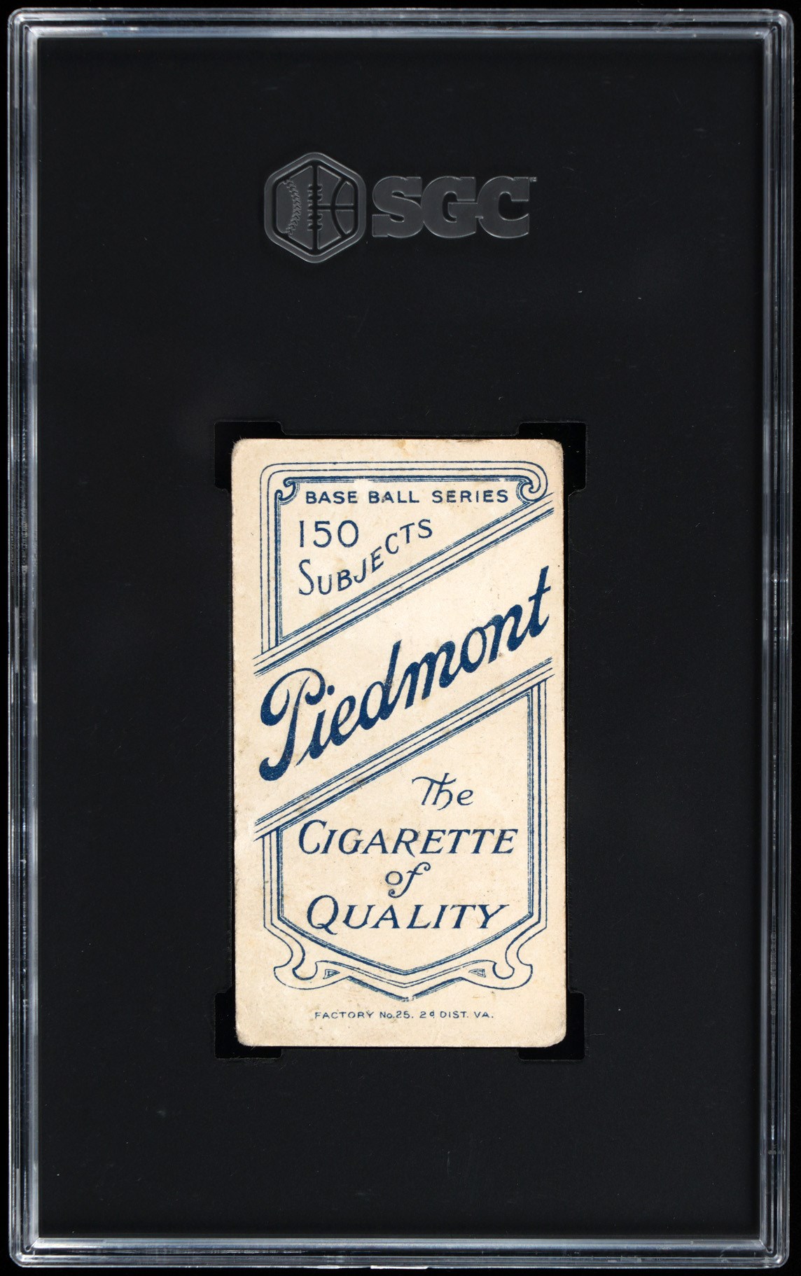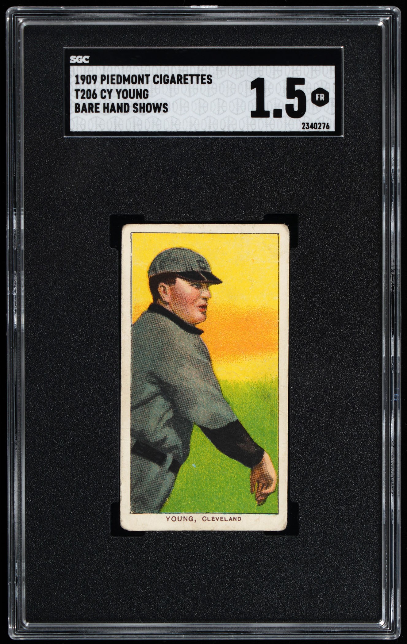 Graded FAIR 1.5 by SGC with a Piedmont 150 Subjects back. Visually appealing 1909-1911 T206 White Border Cy Young (Bare Hand Shows) pose that presents at the zenith of its overall technical grade. Opening Bid $400.